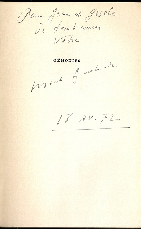 1972. A la NRF chez Gallimard, collection blanche, 1972. Format 12x18 cm, broche, 150 pages. Couverture tachee, voir photo, interieur impeccable. Etat correct.