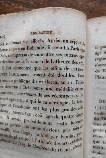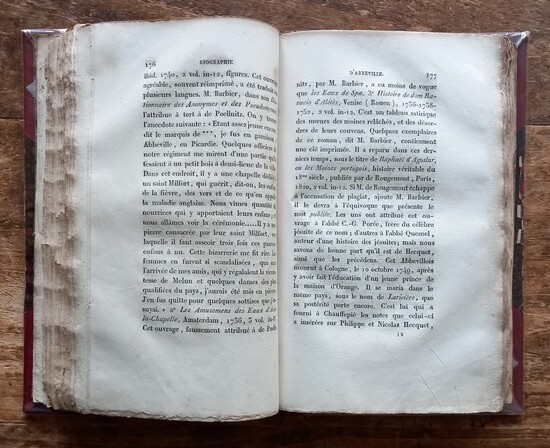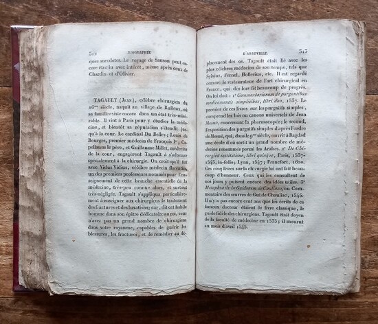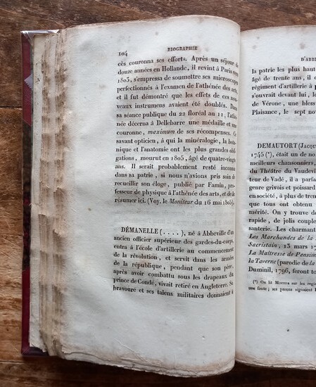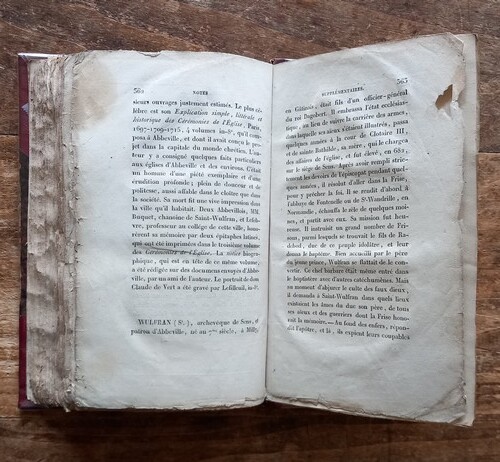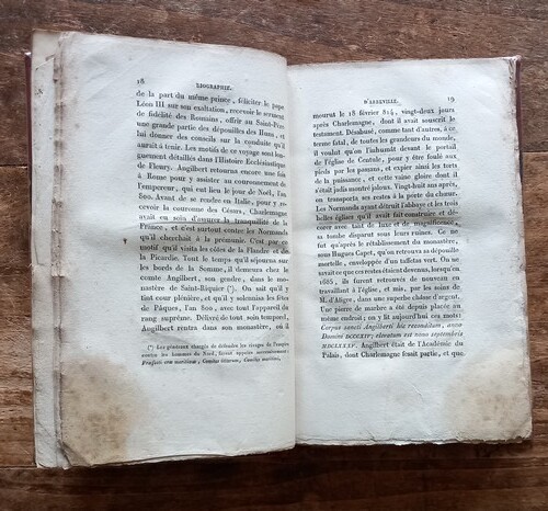 Louandre Abbeville. Abbeville, Imprimerie Devérité 1829. Reliure demi basane rouge à coins usagée: cuir frotté, plats marbrés avec quelques manques, 364 page dont une bonne partie avec jaunissures et mouillures ( voir quelques exemples en photos ). Dernière page avec manque en marge.