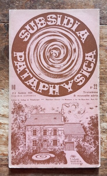 Collège de Pataphysique, cahiers agrafés sous couverture souple, exemplaire n° 62 / 222 sur papier rode lurance, 96 pages. Petit manque au bas du dos.,