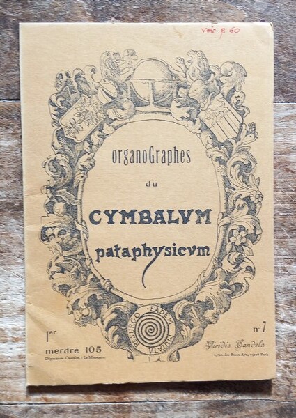 Collège de Pataphysique, cahiers agrafés sous couverture souple, une annotation au style sur la 1ère de couverture et une croix au stylo sur la page 60, exemplaire n° 62 / 222 sur papier pourpre, 66 pages, bon exemplaire.