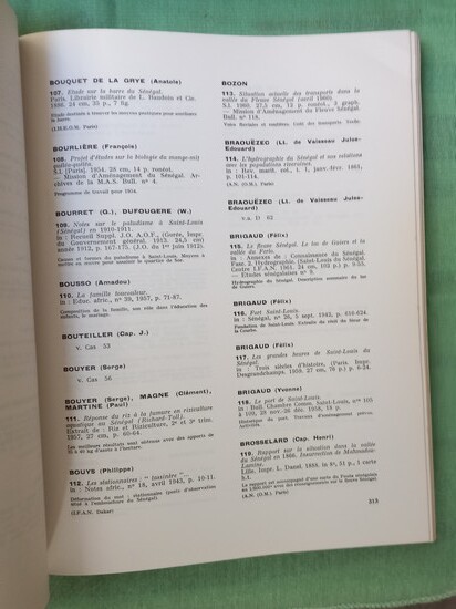 Laurence Porges, Bibliographie des régions du Sénégal, Edité pour le compte du Ministère du Plan Dakar 1969, broché, couverture souple rouge, 3 cartes en dépliant, 705 pages, bon exemplaire, rare.
