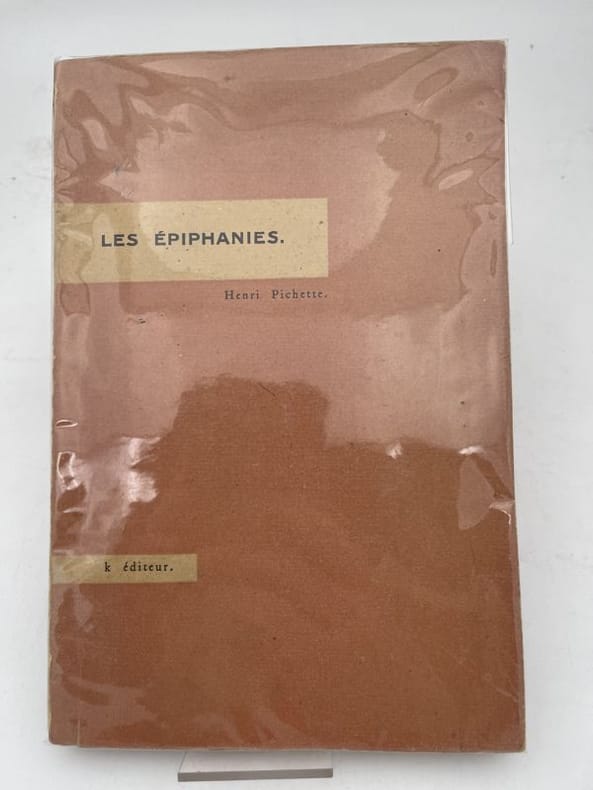 K éditeur, 1948. In-8 br. Maquette de Pierre Faucheux. Les Epiphanies ont été représentées pour la première fois le 3 déc. 1947, avec G. Philippe, R. Blin, M. Casarès, etc. devant des toiles de fond de Matta et une musique de Maurice Roche. Mise en scène de Georges Vitaly. E.O. ex. num. sur Marais Crevecoeur.