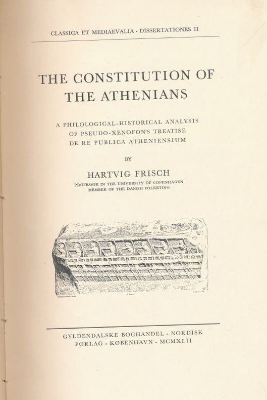 Gyldendalske Boghandel, Kobenhavn Gyldendalske Boghandel, Kobenhavn, 1942. In-8 relié demie percaline verte à coins. 350 pages. Texte en anglais. A philological historical analysis of pseudo-xenofon's tratise de Re publica Atheniensium. Classica et mediaevali. Dissertationes II. Très bon état.