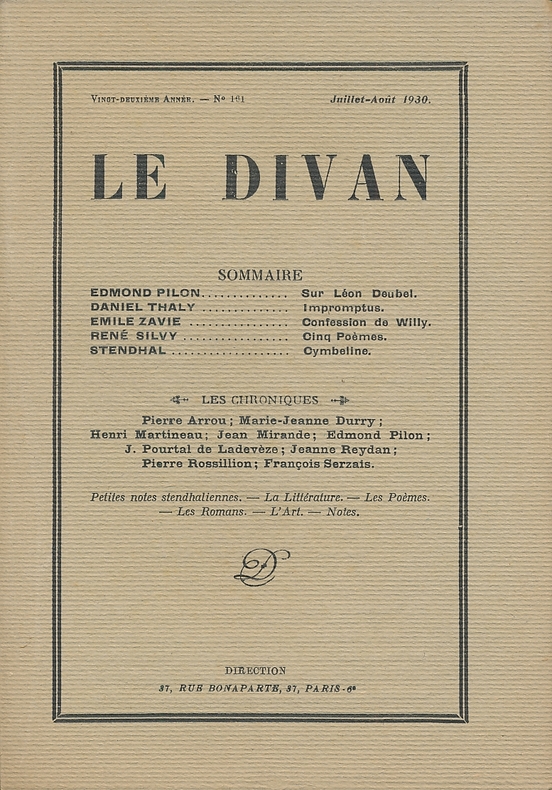 Le divan Le Divan, 1930. In-12 broché, non coupé. Rousseurs. Stendhal : Cymbeline, etc. Bon état