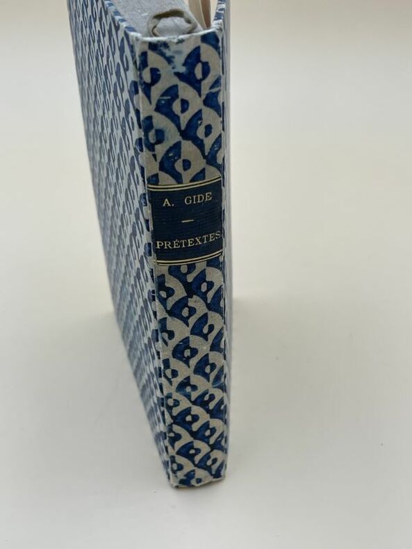 5 vol. in-12 reliure uniforme demi-basane postérieur marron, dos à 7 nerfs, couvertures conservées. Rappel des titres complets : Incidences, 39e édition, NRF Gallimard, 1948. Interviews imaginaires, 17e édition, NRF Gallimard, 1949 ; Prétextes. Réflexions sur quelques points de littérature et de morale. Mercure de France, 1947 ; Feuillets d'Automne précédés de quelques récents écrits, Mercure de France, 1949 (carte "Hommage de l'auteur absent de Paris"). Divers, 7e édition, NRF Gallimard, 1931. Dostoïevsky (Articles et Causeries), Librairie Plon, 1959 ; Retour de l'U.R.S.S suivi de retouches à mon retour de l'U.R.S.S., 9e édition, NRF Gallimard, 1950. Littérature engagée, 7e édition, NRF Gallimard, 1950