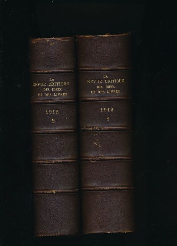 Nouvelle librairie Nationale Paris, Nouvelle librairie Nationale, 1912. 2 forts volumes in-8 reliés demi-chagrin marron, dos à nerfs, titre doré. Contient les tomes XVI et XVII, du n°90 du 10 janvier 1912 au n° 101 du 25 juin 1912. soit 12 numéros. Les couvertures sont conservées. Cet exemplaire a été tiré sur papier de hollande van gelder zonen. Il porte le N°6. Rousseurs et brunissures sur les couvertures conservées, l'état intérieur très frais. Le n° 101 est consacré à Jean-Jacques Rousseau.
