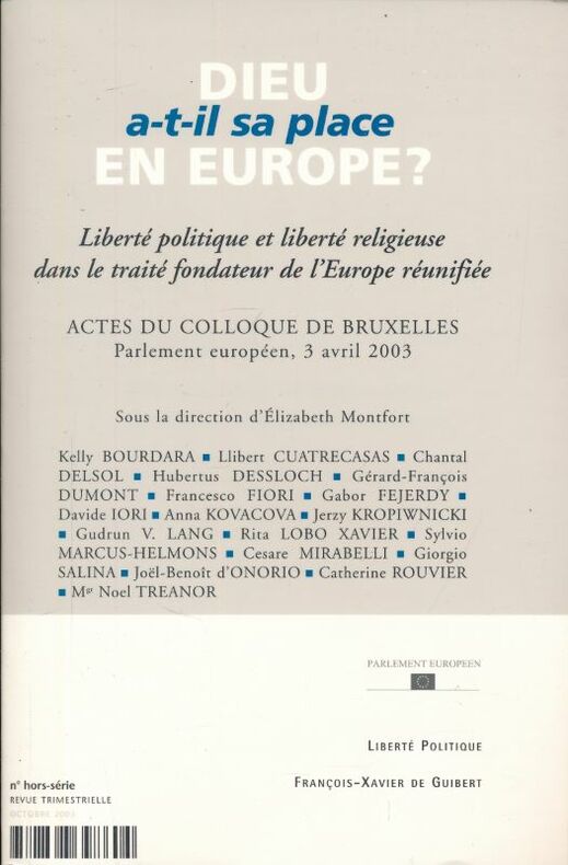 Actes du colloque Liberté politique et liberté religieuse dans le traité fondateur de l'europe réunifiée. Sous la direction d'Elizabeth Montfort. Classification Dewey : 200-RELIGION