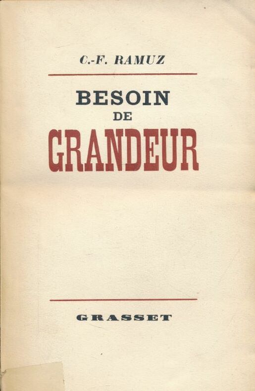 Edition originale. Un des 45 premiers exemplaires sur Hollande (XV). Très bel exemplaire agrémenté d'un non moins bel envoi autographe signé de Ramuz à l'éditeur Richard Heyd: "Il touche un corps qui est pesant, qui occupe une place, qui est doué de mouvement et de chaleur; et il y a dans ce corps une conscience que je ne peux pas empêcher de tendre à tout vouloir connaître, même l'inconnaissable, surtout l'inconnaissable - et c'est une grandeur... C. F. Ramuz à Richard Heyd." Ex-libris anonyme au premier contreplat, un autre de Richard et Monique Heyd (portrait de Ramuz par Auberjonois). Richard Heyd (plus tard directeur des éditions Ides et Calendes) et son épouse, Monique, possédaient le plus fabuleux ensemble sur Ramuz jamais constitué. Cet exemplaire a figuré dans le catalogue n° 3 du libraire Nicolas Rauch sous le n° 685, en 1953. Il était alors non relié. Bringolf/Verdan, n°50.