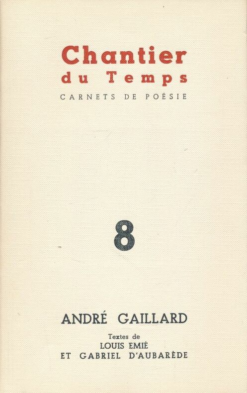 Subervie Sans nom, Subervie, Rodez, 1954. In-8 en feuilles non paginé. Edition originale tirée à 150 exemplaires celui-ci n°70. André Gaillard textes de Louis Emié et Gabriel d'Aubarède. Prendre feu poème d'André Gaillard. Eléments d'une bibliographie d'A. G par Jean Digot. Très bon état