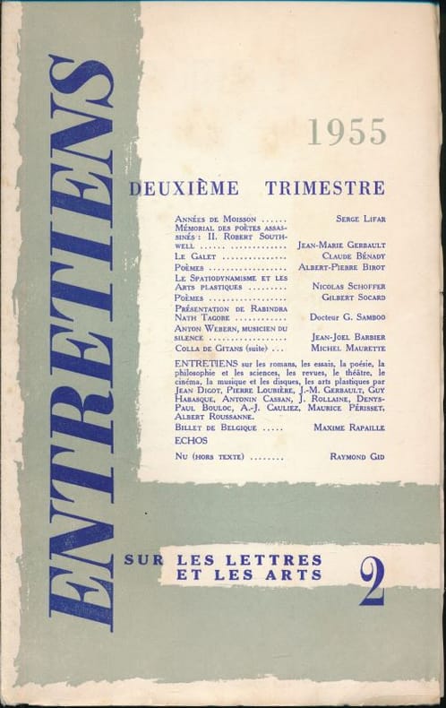 ENTRETIENS SUR LES LETTRES ET LES ARTS. " Revue trimestrielle ". Rodez (21, rue de l'Embergue). Directeur : Jean Subervie. Rédacteur en chef : F.-J. Temple puis Jean Digot. In-8° broché. 28 numéros (dont un double, le n° 27-28) ont paru en 27 livraisons de 1955 au 3e trimestre 1969.