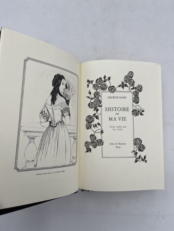 Paris, 1855. Leipzig, chez Wolfgang Gerhard [Typographie de L. Schnauss] 13 tomes reliés en 6 volumes petits in-12 (14 x 10 cm) de 162, 166, 147, 171-(1), 164, 160, 160, 160, 164, 160, 160, 160 et 154-(6) pages. Collationné complet. Reliure demi-basane maroquinée bleue nuit, dos lisses ornés de filets dorés en guise de faux-nerfs, auteur, titre et tomaisons dorés, plats de papier marbré. Reliures homogènes, décoratives et solides. Quelques légers frottements, intérieurs frais en dépit de rousseurs et brunissures du papier localisées essentiellement aux premiers et derniers feuillets. Bon papier pour l'ensemble de la série. Très rare édition non autorisée ou préfaçon publiée à Leipzig très peu de temps après le lancement de l'édition française en volumes à Paris par Lecou (1854-1855, 20 volumes in-8). La plupart des bibliophiles peuvent abandonner l'idée de trouver à bon compte et en belle condition d'époque la très rare édition originale publiée entre 1854 et 1855 en 20 volumes in-8 à Paris chez Lecou. L'édition primitive et la seule que l'on rencontre assez souvent, elle celle donnée l'année suivante (1856) en 10 volumes in-18 par Michel Lévy frères. Le texte d'Histoire de ma vie avait été publié en feuilleton dans La Presse entre le 5 octobre 1854 et le 17 août 1855 (138 numéros). L'édition dont nous donnons ici le descriptif est une édition non autorisée (clandestine ou contrefaçon pourrait convenir) dont l'histoire et le détail mérite d'être donné, tant pour sa rareté avérée que pour ses particularités bibliographiques. Voici quelques éléments qui permettent de situer dans le temps ce tirage spécial de Leipzig. On trouve dans notre exemplaire, et ce uniquement à partir du quatrième tome, un timbre encré circulaire portant mention "SAECHS. FRANZOES. VERTRAG. 1856" qui signifie : traité conclu entre la Saxe et la France. Ce cachet signifie que les volumes sur lesquels il est apposé ont été soumis aux stipulations du traité conclu en 1856 entre la Saxe et la France sur la propriété littéraire. Ce traité a été promulgué le 14 juin 1856. En résumé il s'agit d'un traité qui protège l'un et l'autre pays, France et Saxe, contre les contrefaçons (éditions non autorisées) et ce de manière bilatérale. A cette époque, Leipzig, comme d'autres villes d'Europe (Bruxelles notamment), est un véritable centre de la contrefaçon en matière d'édition des auteurs, français notamment. Plutôt que de détruire les éditions lancées sur la marché avant le printemps 1856, il a été décidé de faire un inventaire complet des fonds des libraires de Leipzig et des autres villes de Saxe afin de recenser ces éditions non autorisées. Plutôt que de les détruire (au détriment des libraires et imprimeurs locaux) il a été décidé de faire apposer systématiquement ce cachet encré, stigmatisant ainsi de manière claire et nette tout volume publié sans l'accord de l'auteur. Les exemplaires non revêtus de ce timbre encré étaient passibles de confiscation et de destruction tant chez les imprimeurs et libraires-éditeurs. De ceci découlait une taxation à l'importation sur le sol français (20 francs pour 100 kg pour les livres et brochures). Tout finit toujours par s'acheter ... y compris les droits d'auteurs ... au kilo ! De ce fait, les exemplaires de cette édition (dont nous ne savons pas le chiffre du tirage) ont dû être assez peu répandus sur le sol français. Sans doute même de très nombreux exemplaires, non revêtus du timbre encré, ont-ils été détruits par l'administration française. Tous ces éléments font que cette série, complète en 13 tomes, est devenue fort rare. Il fait maintenant nous arrêter au contenu de ces 13 tomes. Nous avons comparé minutieusement le détail des chapitres entre l'édition définitive de 1876 (la dernière revue par l'auteur), l'édition originale de 1855 en 20 volumes in-8 (Lecou) et notre édition de 1855 (Leipzig). Il s'avère que plusieurs différences notables sont à signaler. Le découpage des parties est différent (pour s'adapter matériellement au format de l'édition de Leipzig, en 13 volumes contre 20 volumes pour l'originale). Par ailleurs, on constate dans l'édition de Leipzig (1855) la suppression du chapitre VI (première partie), chapitre consacré au Maréchal de Saxe (ce n'est sans doute pas un hasard si ce chapitre a été supprimé de cette édition ... de Saxe). Il faut remarquer ensuite, chapitres après chapitres, de nombreuses suppressions de paragraphes (notamment et plus particulièrement aux chapitres VII, VIII, IX, X, XI, XII, et plusieurs autres. Ces suppressions sont-elles dues à une auto-censure de l'éditeur de Leipzig ou bien un allègement du texte (pour gagner du volume ...) concernant des chapitres jugés "non essentiels". L'affaire serait à creuser et mérite toute l'attention des bibliographes à naître. Quoi qu'il en soit, il en résulte que cette édition de Leipzig présente donc un texte allégé de plusieurs chapitres et paragraphes. Difficile d'imaginer que George Sand n'ait pas eu vent de cette édition "pirate" venue de Saxe. Qu'en a-t-elle pensé ? écrit ? dit ? Peut-être sa correspondance en fait-elle mention ? Nous n'avons rien trouvé à ce sujet. Nous avons trouvé trace d'une édition de Berlin (F. Schneider, [ca 1855], 20 tomes - CCfr, B.M. Rennes, cote HP 4604/1-20), et une autre aussi à Leipzig (chez Auguste Schnee) en 11 vol. in-16 donnée comme la pré-façon (pré-originale de l'édition Lecou). Ces trois éditions de Leipzig et Berlin, trois préfaçons, montrent assez l'engouement pour ce texte dès sa publication dans La Presse. Histoire de ma vie n'est pas une biographie linéaire. C'est un choix de morceaux de la vie de George Sand. Les premiers volumes sont tout entiers consacrés à l’ascendance de bonne dame de Nohant. Sa famille, ses relations, ses émotions, sa jeunesse. Il faut d'ailleurs 