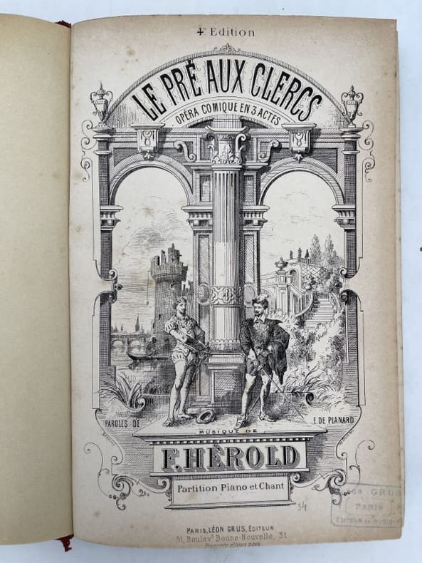 Paris, Léon Grus vers Paris, Léon Grus vers 1890 . In-4 relié demi basane rouge, dos à fleurons et titre dorés. 267 pages. Partition piano et chant. Paroles de E de PLAGNARD.