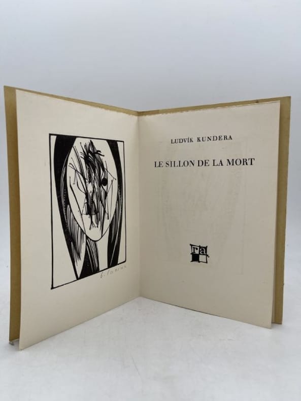 Editions Ra Brno Tchécoslovaquie, Editions Ra, 1947. In-12 en feuillets sous chemise à rabat. 16 pages non coupées. Transposition française par Pierre Fabricius avec un bois de Bohdan Lacina. Envoi autographe de l'auteur. Tirage limité à 300 exemplaires. Bon état.