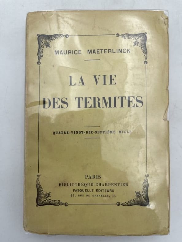 La vie des termites in 8 broché,couverture rempliée,faux-titre,titre,197 pages,1 feuillet de table édition numérotée sur grand vergé Aux éditions du livre Monte-Carlo Très bon état La vie des fourmis in 8 broché,couverture rempliée,faux-titre,titre,237 pages,1 feuillet de table,édition numérotée sur grand vergé.Aux éditions du livre Monte-Carlo Très bon état La vie des abeilles in 8 broché, couverture rempliée,faux-titre,titre,296 pages,1 feuillet de table,édition numérotée sur grand vergé.Aux éditions du livre Monte-Carlo vers 1945 Très bon état Ces 3 volumes sous chemise éditeur cartonnée avec titres et emboitage bordé de toile rouge.Très bon état.
