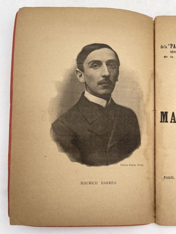 A la permanence Paris, A la permanence, 1903. Brochure In-12 de 64 pages. Portrait en frontispice. Programme de campagne de Maurice Barrès en vue des éléctions législatives (probablement 1906). Couverture détachée. Mouillure marginale sur le premier feuillet blanc. Bon état.
