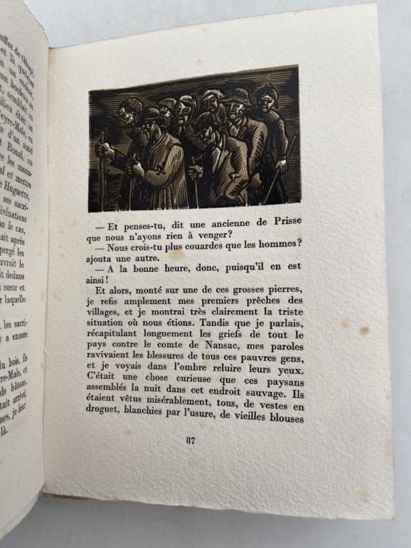 Dordogne (24), Christian Seignol, 1937. In-8 broché, ill. sur 1er plat, 32 p. Portrait en frontispice. Bois dessinés et gravés par Maurice Albe. Publicités sur pages roses. Bon état : rousseurs sur couv.Premier numéro des cahiers de Jacquou le Croquant.