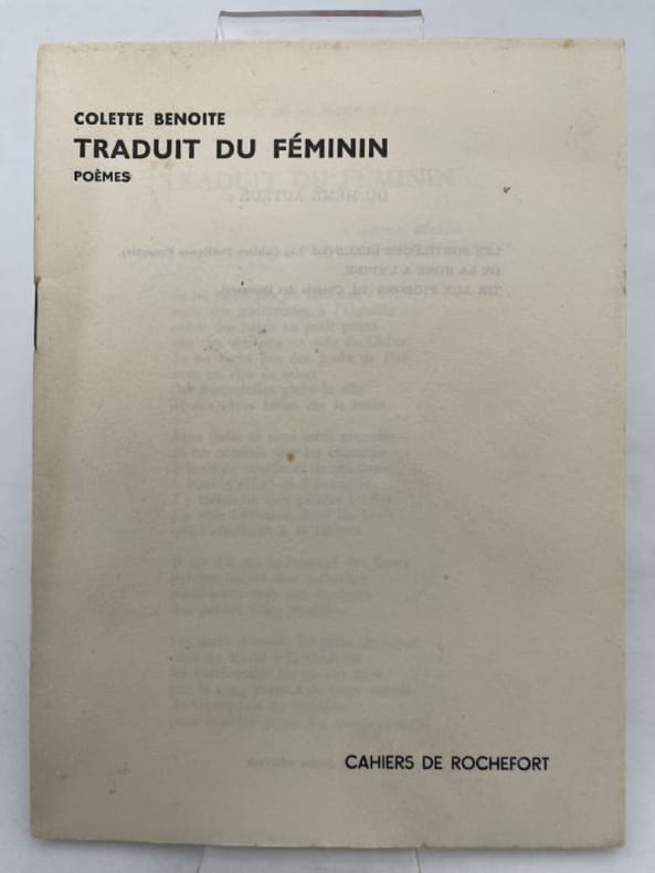 Vitry sur Seine, Les Cahiers de Rochefort, 1953, édition originale, . Broché, 14 cm x 19 cm, 12 pages. Poèmes de Colette Benoite, bel envoi de l’autrice à Jean Rousselot. Un léger accroc sur la couverture sinon bon état.