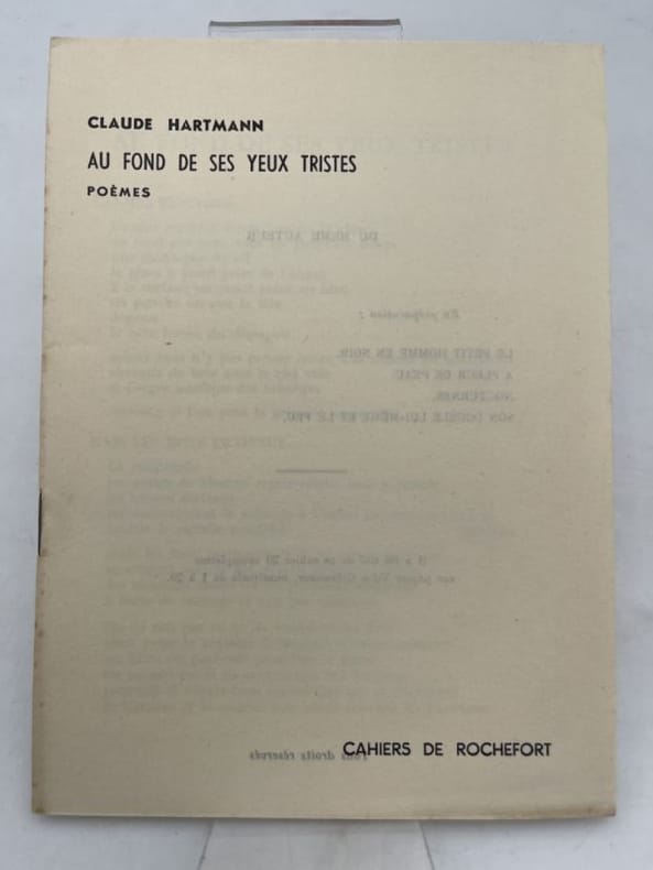 Vitry sur Seine, Les Cahiers de Rochefort, 1954, édition originale. Broché, 14 cm x 19 cm, 12 pages. Poèmes de Claude Hartmann, envoi de l’auteur à Jean Rousselot. Bon état.