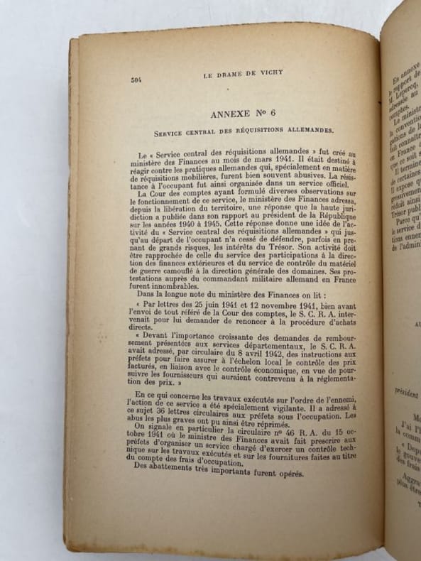 Plon Plon, 1951. Fort In-8 broché de 552 pages. Présente 20 documents annexes relatifs aux affaires économiques et financières du pays durant l'occupation, notamment 1 tableau des recettes et des dépenses de l'Etat pour la période 1940-1944 ainsi qu'un trableau présentant les charges imposées par l'Allemagne pour la même période. Tome II seul. Petits accrocs sans manque en couverture mais interieur frais. Bon état.
