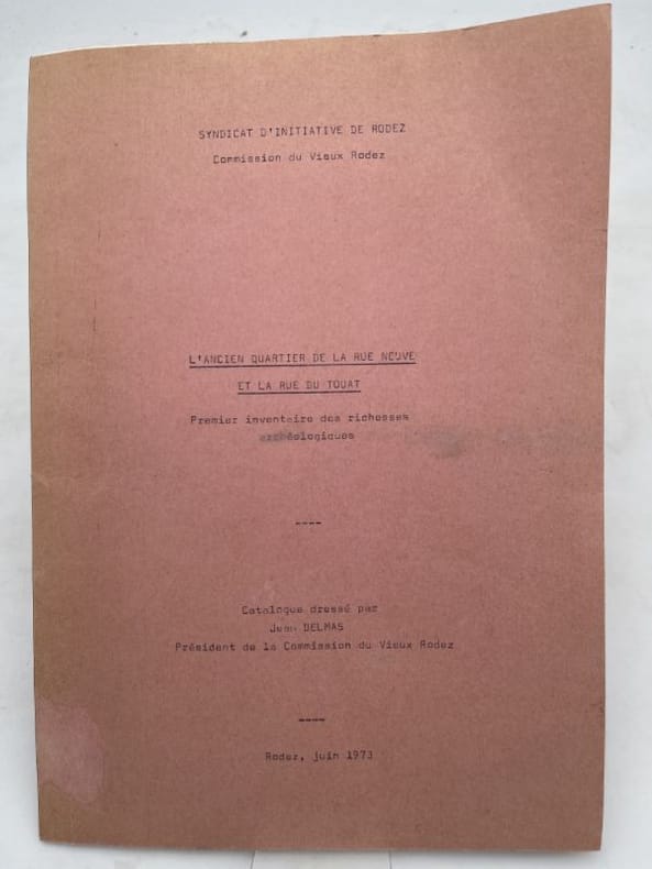 Commission du Vieux Rodez Commission du Vieux Rodez, juin 1973. Document tapuscrit In-4 broché, 24 pages, 82 monuments répertoriés et décrits. Une tache au deuxième plat, pour le reste bon état