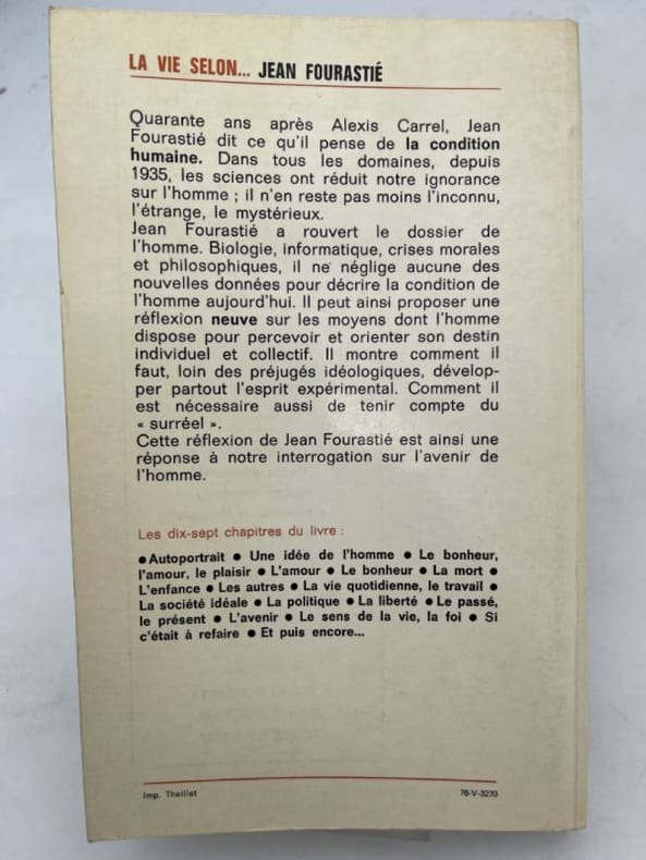 ROBERT LAFFONT. 1976. In-8. Broché. Bon état, Couv. convenable, Dos satisfaisant, Intérieur frais. 284 pages. Envoi de l'auteur sur la page de faux titre: Au professeur Jean B..., J. Fourastie.. . . . Classification Dewey : 840.091-XX ème siècle