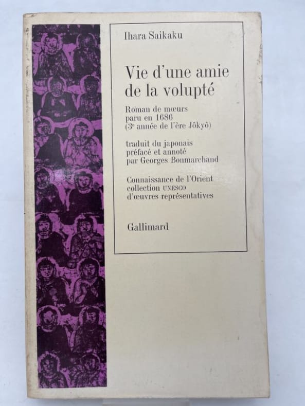 Roman de moeurs paru en 1686 ( 3ème année de l'ère Jôkyô ). Traduit du japonais. Préfacé et annoté par Georges Bonmarchand. Connaissance de l'orient n° 20. Classification Dewey : 895-Littérature d'Asie