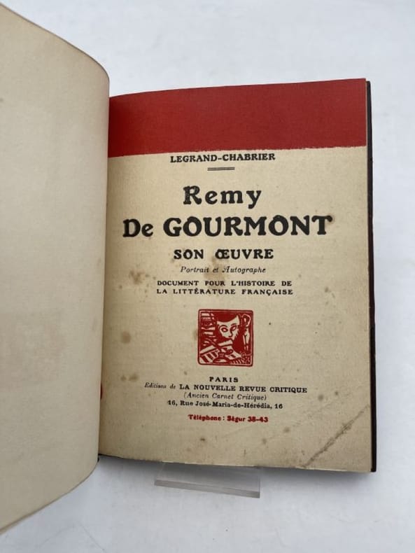 Paris, Mercure de France, 1919 ; in-12, 96 pp., broché. Étude littéraire à propos de Remy de Gourmont a été un écrivain et critique littéraire très brillant, ami de Villiers De l'Isle Adam, Huysmans, Mallarmé et Mirbeau. Défiguré par un lupus, il reste cloîtré chez lui à écrire et ne sort de chez lui que pour se rendre chez son éditeur, le Mercure de France. Avec un portrait et un autographe reproduit. Très bon état.