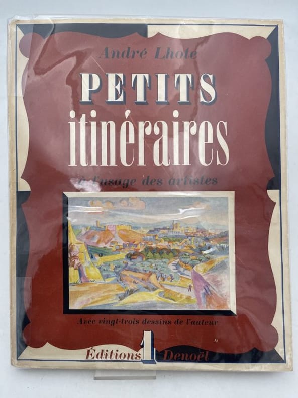In 4 broché couverture illustrée en couleurs rempliée.Faux-titre,frontispice(photo)titre en noir et rouge,148 pages, 1 feuillet de table des matières,23 dessins hors-texte de l’auteur,une photo.Denoël 1943.édition numérotée sur vélin blanc promenade dans le région d'Avignon et du Lubéron avec de jolies vues très bon état