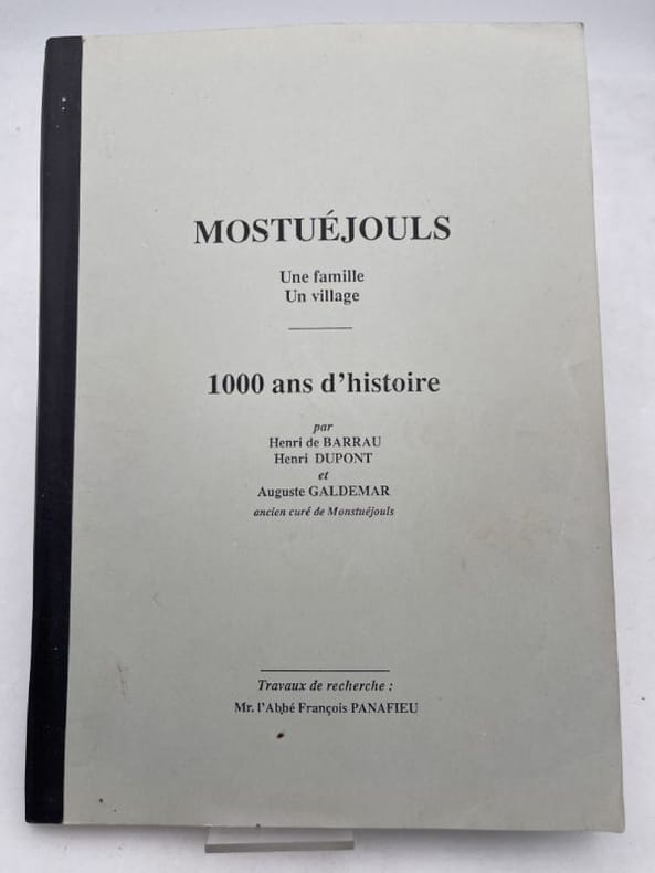 Sans nom Sans éditeur, sans date, In-4 broché, 150 pages. Documents tapuscrits collectés dans divers ouvrages, notamment le sécrits d' Henri de Barrau, H. Dupont et Auguiste Galdemar. Travaux de recherche de M. l'Abbé François Panafieu, reconstituant ainsi l'histoire de Mostuéjouls. Très bon état.