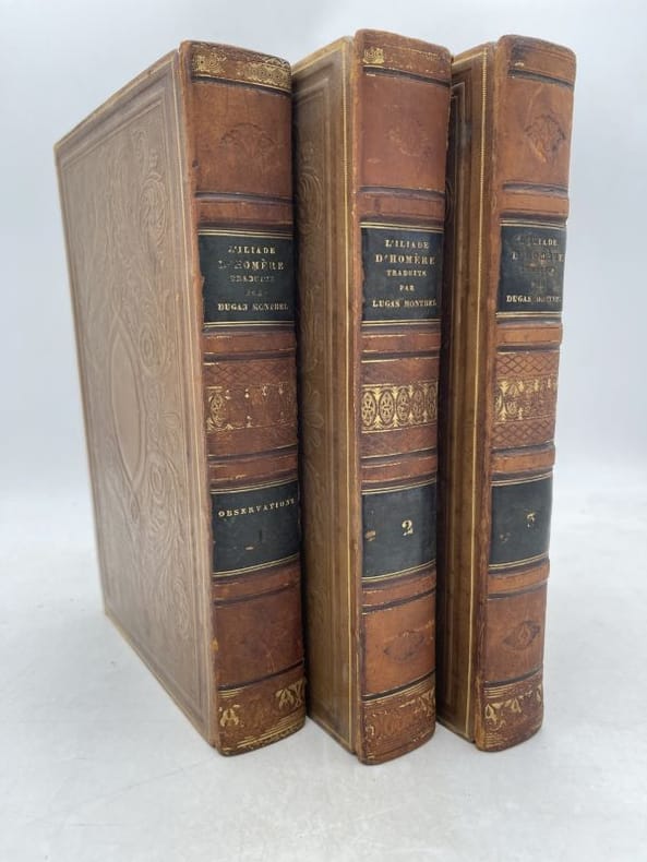 Firmin Didot Paris, Typographie de A Firmin Didot, 1829 - 1830. 3 volumes Grands In-8 reliés plein veau blond, dos lisses ornés, pièces de titre noires. Plats estampés d'un motif à froid encadré d'un filet doré. Tranches marbrées. Les dorures en dos sont un peu effacées. 474 + 455 + 421 pages. Mors supérieur fendu au tome 2. Intérieur très propre.