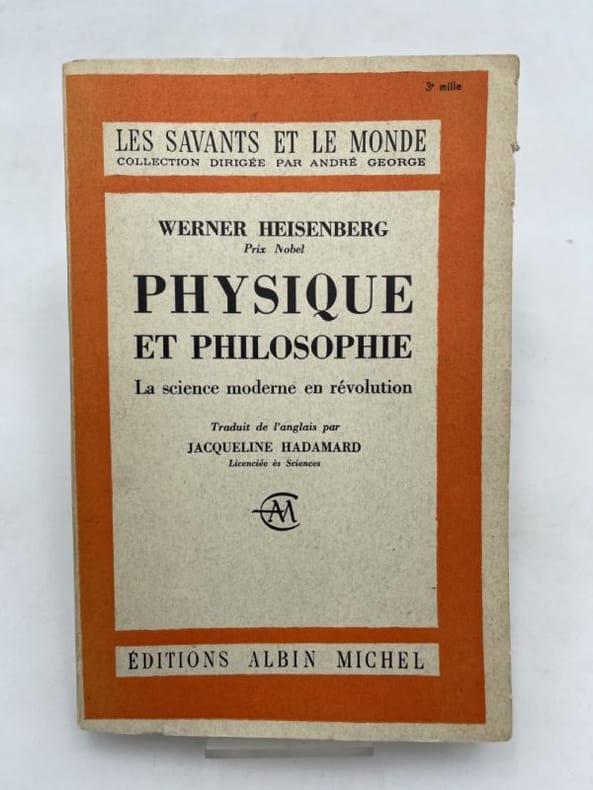 Paris Albin Michel In-8, Broché, Paris, Éditions Albin Michel, 1961. In-8 broché de 250 pages. Collection : Les savants et le monde, dirigée par GEORGE André. Traduit de l'anglais par HADAMARD Jacqueline. Heisenberg a été nobélisé en 1932 pour ses travaux novateurs en physique quantique. Intérieur impeccable. Bon état