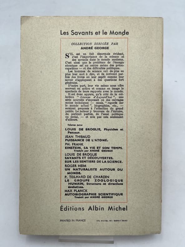 Albin Michel, Paris, 1961, 252 p.coll. Les savants et le monde, Bon état , épuisé chez l'éditeur dans cette collection