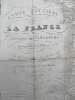 Belle carte de France en couleurs (qq. anciennes traces de crayon de couleurs soulignant la frontière du Rhin).