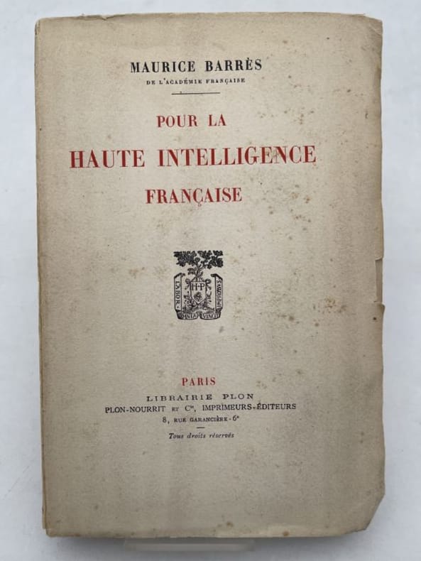 Plon 1925, in-12 broché, XXVI-282 p. (petit accroc sans gravité au premier plat de couverture, sinon très bon état) Première édition (mention fictive d'édition), parue à titre posthume de ce recueil de textes, articles et discours que Barrès donna au cours d'une grande campagne entreprise au lendemain de la Grande Guerre pour la reconstitution intellectuelle de la France.