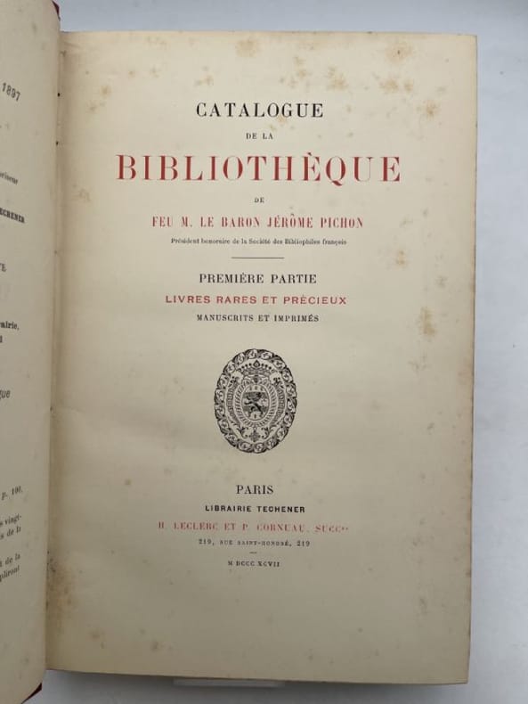 Librairie Techener Paris, Librairie Techener, 1897. In-4 relié demi-toiel rouge, de XLVI + 4598 pages. Reliure tachée et quelques rousseurs.