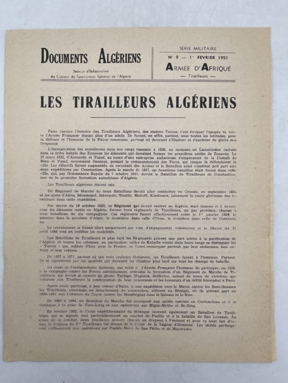 Service d'information du Cabinet du Gouverneur Général en Algérie Service d'information du Cabinet du Gouverneur Général en Algérie, 1951. In-4 carré en feuillets de non paginé. Bon état