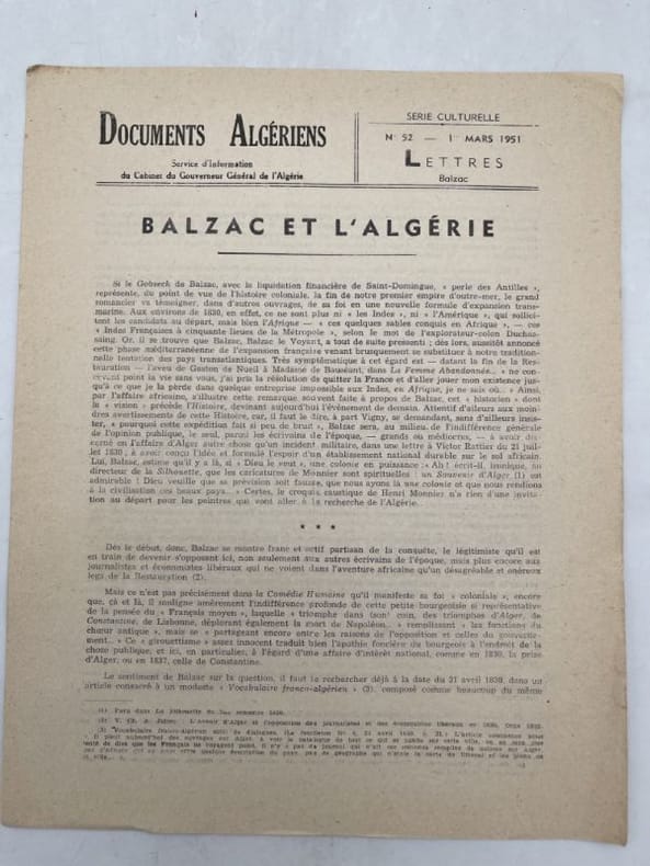 Service d'information du Cabinet du Gouverneur Général en Algérie Service d'information du Cabinet du Gouverneur Général en Algérie, 1951. In-4 carré en feuillets de non paginé. Bon état