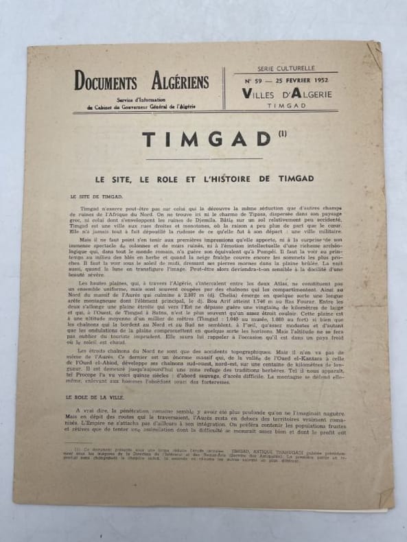Service d'information du Cabinet du Gouverneur Général en Algérie Service d'information du Cabinet du Gouverneur Général en Algérie, 1952. In-4 carré en feuillets de non paginé. Bon état