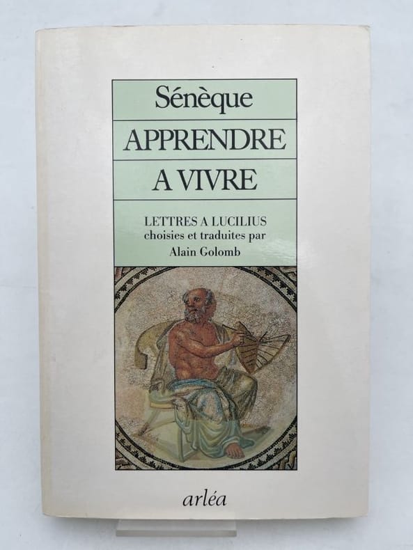 nouvelle édition avec une nouvelle traduction de 1990 Contents, Chapitres : Sénèque (en latin Lucius Annaeus Seneca), né à Corduba, dans le sud de l'Espagne, entre l'an 4 av. J.-C. et l'an 1 apr. J.-C., mort le 12 avril 65 apr. J.-C., est un philosophe de l'école stoïcienne, un dramaturge et un homme d'État romain du Ier siècle. Il est parfois nommé Sénèque le Philosophe, Sénèque le Tragique ou Sénèque le Jeune pour le distinguer de son père, Sénèque l'Ancien. Conseiller à la cour impériale sous Caligula, exilé à l'avènement de Claude puis rappelé comme précepteur de Néron, Sénèque joue un rôle important de conseiller auprès de ce dernier avant d'être discrédité et acculé au suicide. Ses traités philosophiques comme De la colère, De la vie heureuse ou De la brièveté de la vie, et surtout ses Lettres à Lucilius exposent ses conceptions philosophiques stoïciennes. - Les Lettres à Lucilius (latin : Epistulae morales ad Lucilium, soit Épîtres morales à Lucilius) sont un ensemble de 124 lettres écrites en latin par Sénèque (Lucius Annaeus Seneca) lors des dernières années de sa vie (6364) à l'intention de Lucilius le Jeune, alors gouverneur romain de Sicile. La fin de la correspondance est lacunaire, d'au moins une dizaine de lettres, étant donné que Aulu-Gelle cite une lettre du XXIIe livre. Correspondance entre un philosophe accompli et un néophyte intéressé, les Lettres touchent à une foule de sujets de la vie quotidienne aux préoccupations métaphysiques et tendent à expliciter et mettre en valeur les enseignements du stoïcisme adopté par Sénèque en tant que protreptique. En plus de leur attrait principalement philosophique, elles fournissent maintes indications sur le mode de vie des Romains de l'époque (Ier siècle). (source : Wikipedia) bel exemplaire, couverture à peine jaunie, intérieur sinon frais et propre - NB : Il s'agit du premier volume seul de cette série en 2 tomes (Apprendre à vivre), tome 2 absent, édition en grand format, il ne s'agit pas de la réédition en poche)