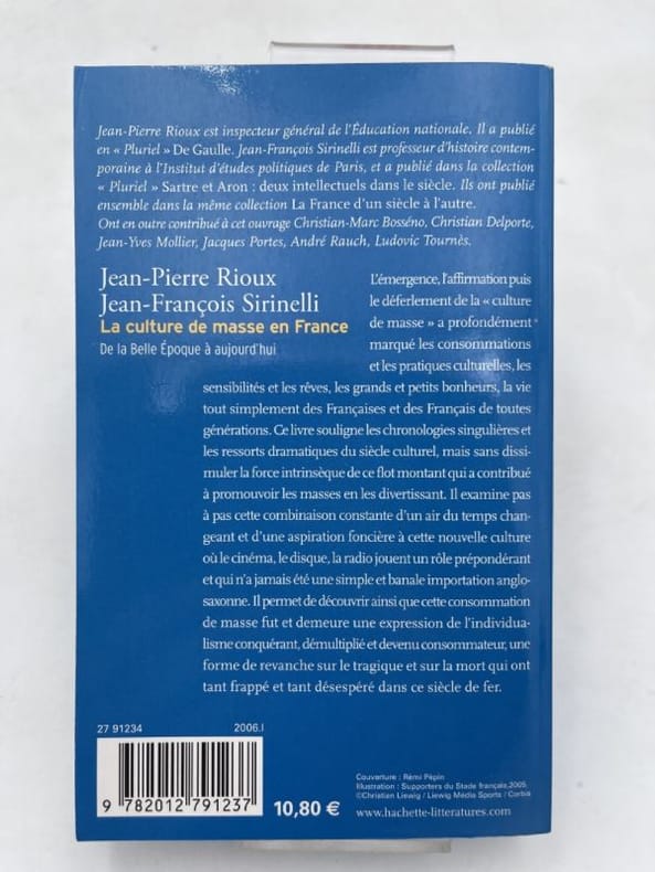 L’émergence, l’affirmation puis le déferlement de la « culture de masse » a profondément marqué les consommations et les pratiques culturelles, les sensibilités et les rêves, les grands et petits bonheurs, la vie tout simplement des Françaises et des Français de toutes générations. Ce livre souligne les chronologies singulières et les ressorts dramatiques du siècle culturel, mais sans dissimuler la force intrinsèque de ce flot montant qui a contribué à promouvoir les masses en les divertissant. Il examine pas à pas cette combinaison constante d’un air du temps changeant et d’une aspiration foncière à cette nouvelle culture où le cinéma, le disque, la radio jouent un rôle prépondérant et qui n’a jamais été une simple et banale importation anglo-saxonne. Il permet de découvrir ainsi que cette consommation de masse fut et demeure une expression de l’individualisme conquérant, démultiplié et devenu consommateur, une forme de revanche sur le tragique et sur la mort qui ont tant frappé et tant désespéré dans ce siècle de fer.