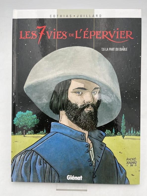 Editions Glénat 1990. In-4 cartonnage éditeur de 48 pages au format 21,5 x 29,5 cm. Couvertures illustrées. Dos carré. Petits tassements aux coins et en haut du 4ème plat. Intérieur frais. Couvertures et illustrations de André Juillard sur scénario de Patrick Cothias. Très bel état général, malgré les petits défauts indiqués. Edition originale ornée d'un dessin original pleine page, au crayon, dédicacé, signé et daté par André Juillard.