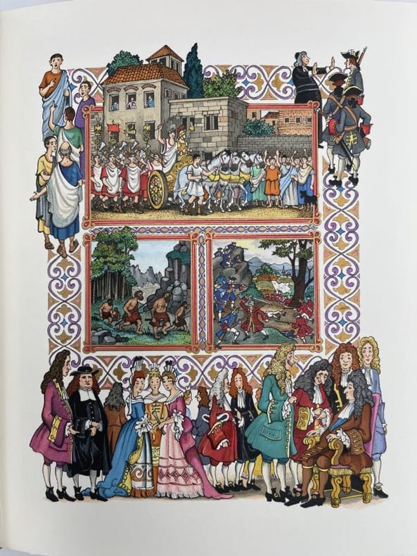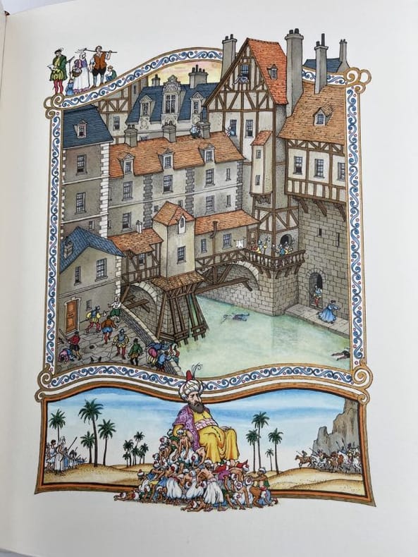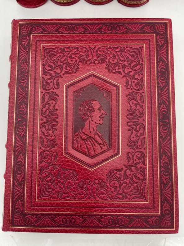 Editions d'art Sefer Nice, Éditions dArt Sefer, 1989 - 1990. 4 volumes In-4 carrés pleine reliure rouge, plats estampés à froid, dos à nerfs ornés, gardes de soie moirée rouge. Sous étui gansé de cuir. 178-[5]pp.; 193-[6]pp.; 190-[5]pp. & 186-[11]pp. Tirage à 1600 exemplaires numérotés. Ouvrage illustré de miniatures en couleurs dans et hors-texte par Da Ros. Tirage limité numéroté. Complet de son certificat d'authenticité. Exemplaire en parfait état et complet de son carton d'emballage d'origine.