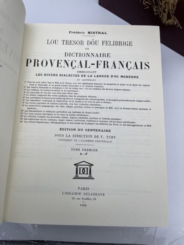 DICTIONNAIRE PRONVENCAL-FRANCAIS / ATTENTION : TOME PREMIER (UNIQUEMENT) / NOTA : Joseph Étienne Frédéric Mistral est un écrivain et lexicographe français de langue d'oc, né le 8 septembre 1830 à Maillane (Bouches-du-Rhône), où il est mort le 25 mars 1914, et où il est inhumé. Classification Dewey : 413-Dictionnaire bilingue