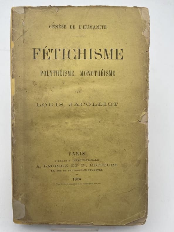 # AUTEUR: Jacolliot Louis # ÉDITEUR: Lacroix A. - Paris # COLLECTION: Genèse de l'humanité # ANNÉE ÉDITION: 1876 # COUVERTURE: 1/2 chagrin rouge - dos à nerfs # DÉTAILS: In 8° relié 387pp. De la marche de la tradition indo-asiatique - Les traditions diluviennes dans l'Inde et chez tous les peuples de l'antiquité. Les déluges d'après les traditions brahmaniques, légendes diluviennes du Hara-Pourana, légende d'Indra, le déluge Chaldéen de l'époque d'Izdoubar, le déluge hébraïque... # PHOTOS visibles sur www.latourinfernal.com