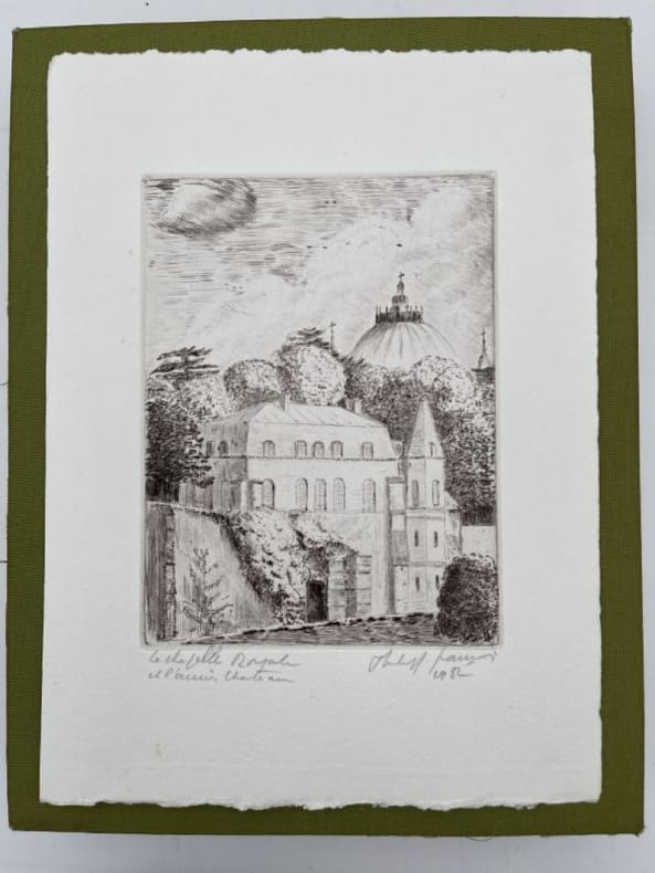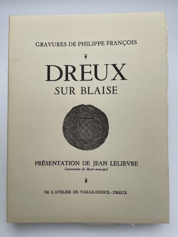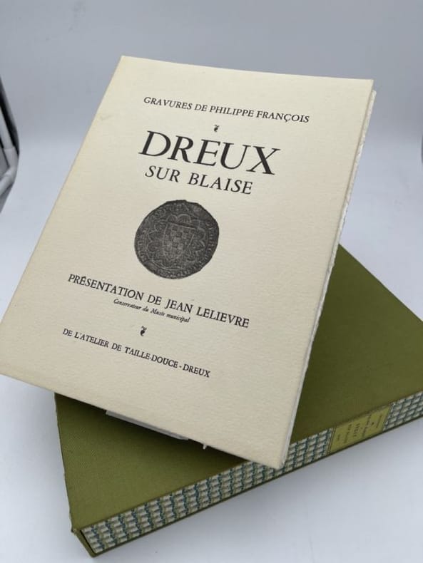 Dreux Dreux, Atelier de Taille-Douce, 1982. In-4 en feuillets sous couverture à rabats et double étui recouvert de tissu vert. Exemplaire non paginé, texte de Jean Lelièvre, 12 gravures de Philippe François sous serpentes et 4 gravures refusées dans sous pochette en annexe, légendées, datées (1982) et signées de l'artiste. L'ouvrage est aussi signé par l'artiste et l'auteur au justificatif. Exemplaire sur Vélin. Très bon état