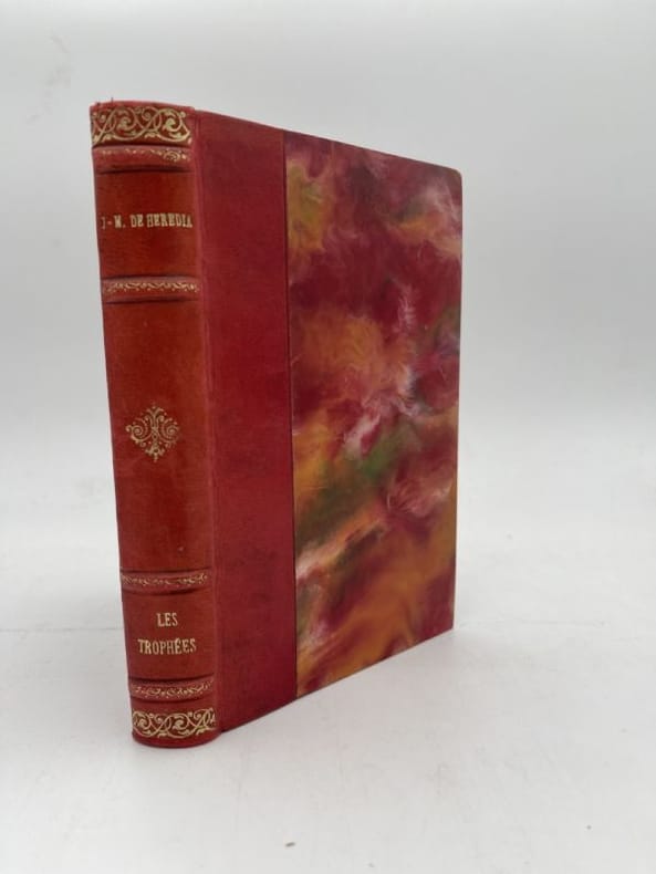 Poésies complètes. Les Trophées. Sonnets et poèmes divers. texte définitif avec notes et variantes. José-Maria de HEREDIA Exemplaire n°441 sur papier vergé Lafuma Edité par Paris, Lemerre, 1924 Reliure demi-cuir brun (dos à nerfs avec fers et filets dorés), coins et plats marbrés Bon état général pour l’âge : quelques signes d’usage sur les coins et le dos, avec usure mineure du cuir et abrasion sur les tranches