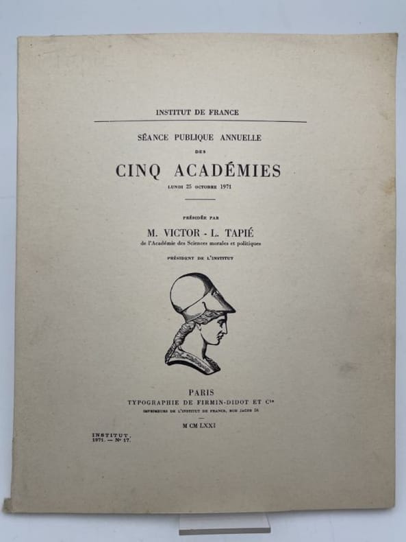Paris, Institut de France Paris, Institut de France, Académie des sciences morales et politiques 1971. Plaquette In-4 agrafée de 16 pages. Bon état