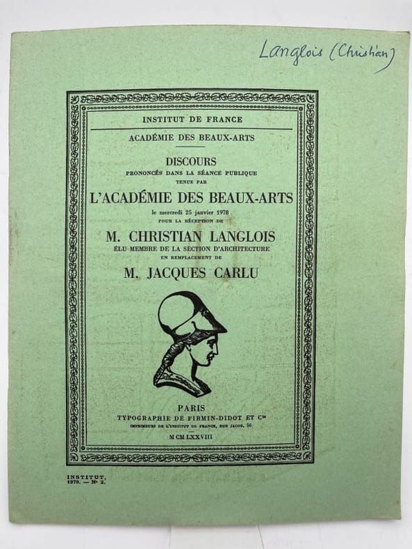 Firmin Didot Paris, Firmin Didot 1978. Institut de France, Académie des Beaux Arts. Plaquette in-4 brochée de 23 pages.