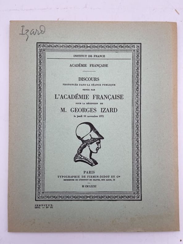 Firmin Didot Paris, Firmin Didot 1971. Institut de France, Académie Française. Plaquette in-4 brochée de 39 pages. Bon état