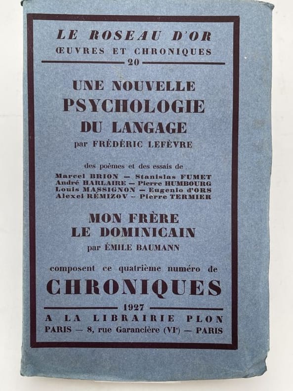Paris, Plon, Le Roseau d'Or, Oeuvres et Chroniques - 20, 1927. In-8, broché, 392 pp.